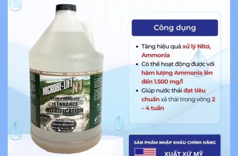 Men vi sinh Lift N1 (Microbe-Lift N1) là chế phẩm sinh học chuyên dụng để xử lý các dạng Nitơ trong nước thải như Amoni (NH4+), Nitrit (NO2-) và Nitrat (NO3-). Sản phẩm chứa hệ vi khuẩn Nitrosomonas, Nitrobacter, Nitrosospira… giúp tăng tốc quá trình Nitrat hóa – khử Nitrat trong bể sinh học. Lift N1 được sử dụng rộng rãi trong các ngành: Nước thải sinh hoạt Chế biến thực phẩm Dệt nhuộm Thủy sản Cao su, giấy Khu công nghiệp